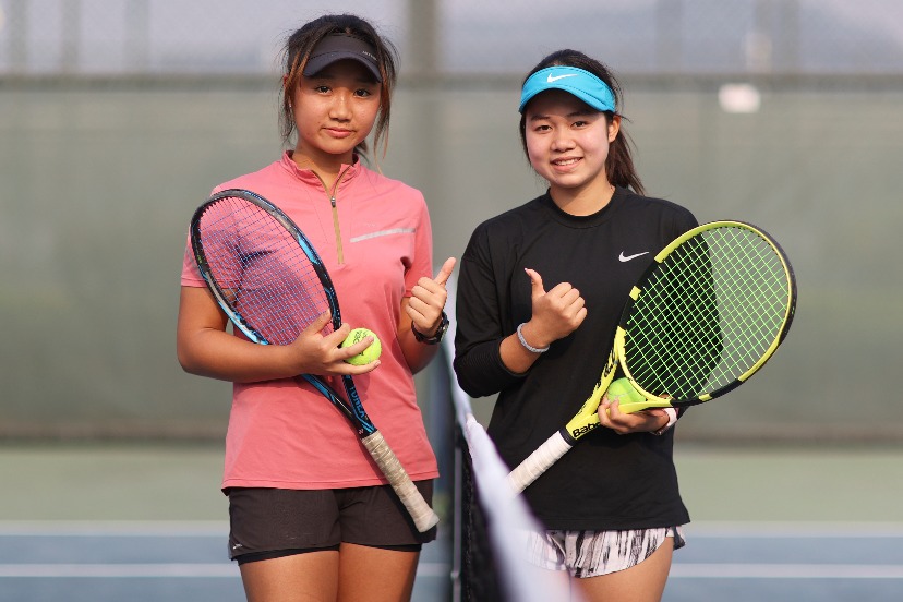 U16女双冠军章奕萱/唐淳溪接受小记者邓沛恩采访