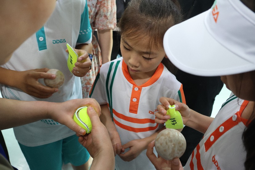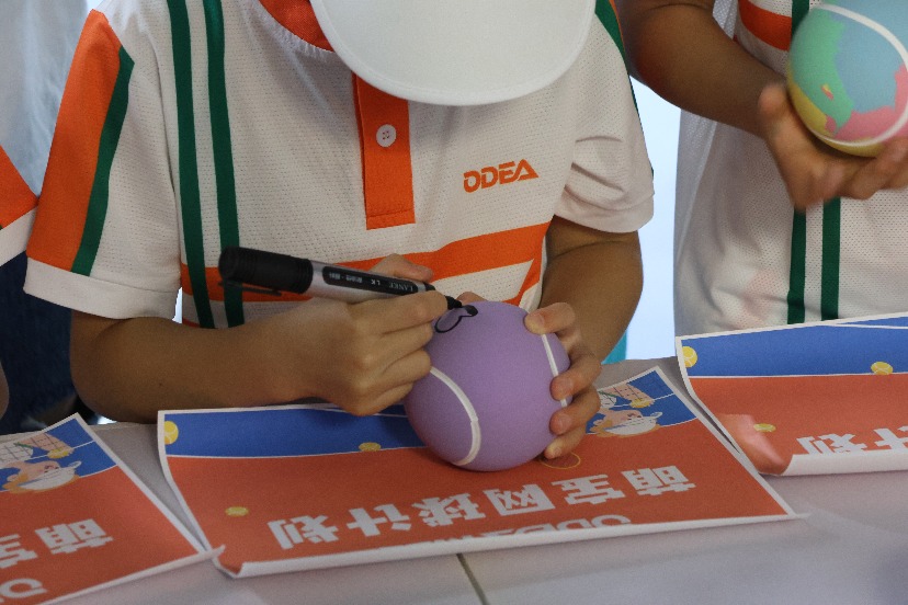 测速赛后,一场别开生面的“一球决胜”网球挑战赛如火如荼地展开。这场特殊的比赛不仅吸引了众多热爱网球的小将们踊跃参与,更是激发了家长们浓厚的兴趣,纷纷携手孩子们共同挑战,现场欢声笑语不断,掌声和喝彩声此起彼伏,气氛达到了高潮。挑战赛后,小将们在色彩缤纷的ODEA新款弹力球上尽情创作,脑洞大开,创意无限,现场洋溢着欢乐的气息。