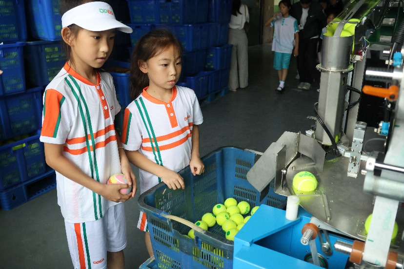 午饭后,网球小将们在工作人员的带领下,参观了欧帝尔网球生产线,了解了ODEA网球诞生的过程,并感受到了定制网球的魅力,相较于其他品牌,欧帝尔在中国拥有生产基地,能够让更多人实地参观生产线,亲身探索网球工艺的魅力。