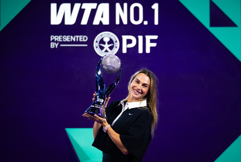 周六,在PIF利雅得WTA年终总决赛上,萨巴伦卡——第16位以世界第一结束赛季的选手——获颁克里斯·埃弗特WTA世界第一奖杯。27岁的萨巴伦卡和前世界第一、WTA利雅得年终总决赛赛事总监穆古鲁扎,赛事传奇大使、前世界第一哈勒普,共同出席了颁奖仪式。